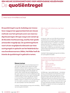 De quotiëntregel is op de studiedag over innovatieve vraagvormen gepresenteerd als een nieuwe methode voor het optimaal scoren van meervoudige keuzevragen. Dit type vraag is een variant op de klassieke meerkeuzevraag, waarbij meer goede antwoorden mogelijk zijn.
