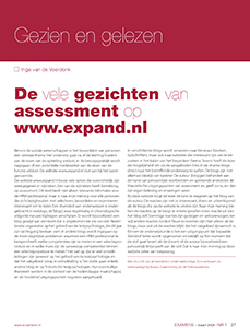 De vele gezichten van assessment op www.expand.nl Binnen de sociale wetenschappen is het beoordelen van personen een centraal thema. Het onderwijs gaat na of de leerling/student aan de eisen van de opleiding voldoet, in de beroepspraktijk wordt nagegaan of een potentiële medewerker aan de eisen van de functie voldoet. De website www.expand.nl sluit aan bij het laatstgenoemde.
