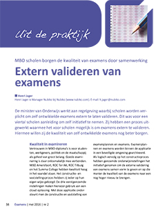 MBO scholen borgen de kwaliteit van examens door samenwerking. De minister van Onderwijs werkt aan regelgeving waarbij scholen worden verplicht om zelf ontwikkelde examens extern te laten valideren. Dit was voor een viertal scholen aanleiding om zelf initiatief te nemen.