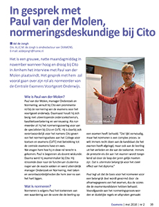 Het is een grauwe, natte maandagmiddag in november wanneer hoog en droog bij Cito in Arnhem het interview met Paul van der Molen plaatsvindt. Het gesprek met hem zal vooral gaan over zijn rol als normeerder van de Centrale Examens Voortgezet Onderwijs.
