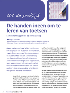 Als we toetsen optimaal willen inzetten om het leerproces van studenten te bevorderen, vraagt dit om samenwerking tussen docent en student. Maar ook om samenwerking van docenten binnen het opleidingsteam. Zelfs om samenwerking tussen hogescholen, want waarom moet iedereen opnieuw het wiel uitvinden?