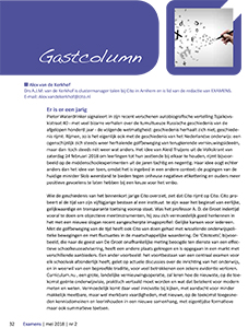 Voor u ligt de tweede aflevering van de vijftiende jaargang van EXAMENS. De eindexamenperiode voor de leerlingen uit het voortgezet onderwijs zal binnenkort afgelopen zijn. Veel lezers zullen daarbij betrokken zijn: als examinator, als corrector of misschien als ouder. Voordat examens afgelegd kunnen worden, moeten nogal wat activiteiten door allerlei functionarissen en organisaties worden verricht. In ons tijdschrift besteden we er aandacht aan in artikelen, door er in de vaste rubrieken op in te gaan, door interviews.