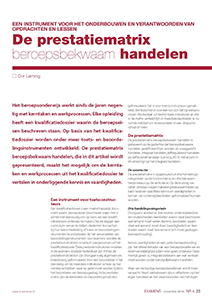 Het beroepsonderwijs werkt sinds de jaren negentig met kerntaken en werkprocessen. Elke opleiding heeft een kwalificatiedossier waarin de beroepseisen beschreven staan. Op basis van het kwalificatiedossier worden onder meer toets- en beoordelingsinstrumenten ontwikkeld. De prestatiematrix beroepsbekwaam handelen, die in dit artikel wordt gepresenteerd, maakt het mogelijk om de kerntaken