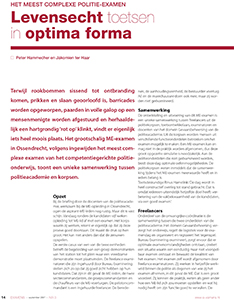 Terwijl rookbommen sissend tot ontbranding komen, prikken en slaan geoorloofd is, barricades worden opgeworpen, paarden in volle galop op een mensenmenigte worden afgestuurd en herhaaldelijk een hartgrondig ‘rot op’ klinkt, vindt er eigenlijk iets heel moois plaats. Het grootschalig ME-examen in Ossendrecht, volgens ingewijden het meest complexe examen van het competentiegerichte politieonderwijs, toont een unieke samenwerking tussen